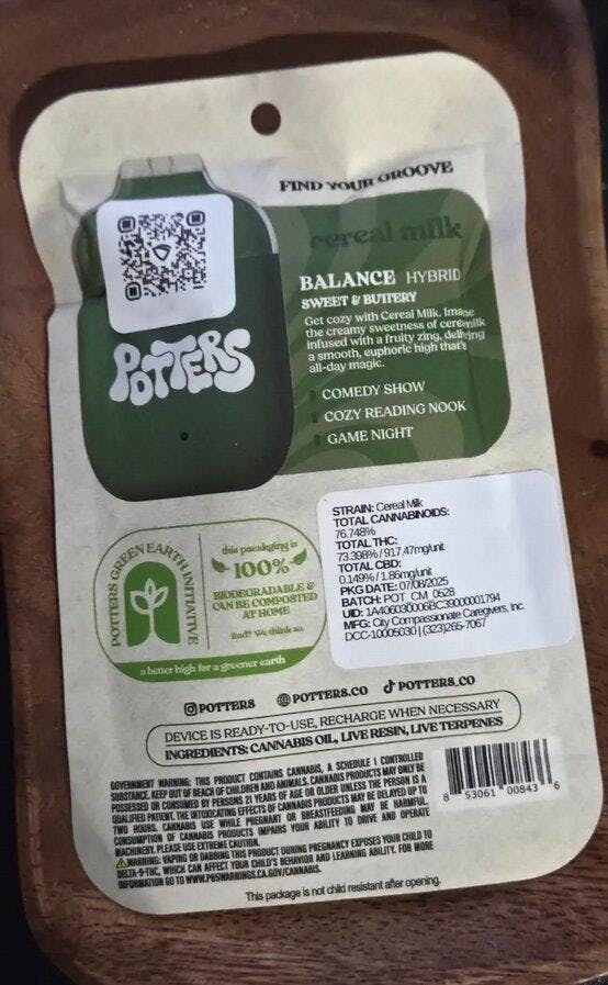 Welcome to POTTERS! The harmonious union of premium ingredients and sustainability. We're paying homage to our two favorite ladies, Mary Jane and Mother Earth. We start by sourcing the best phenotypes cannabis has to offer and utilize industry-leading extraction methods to provide an experience that pays homage to the rich complexities of the cannabis plant. Our product is radically potent, full of flavor, and wrapped in eco-friendly, biodegradable packaging. We're taking it to the next level by offsetting our carbon footprint and planting a tree with every POTTERS product you snag. It's time to groove with a brand that's got your back! 1.25G Total